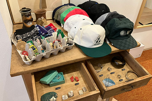 アクセサリーやキャップ、キーホルダーといったヴィンテージ雑貨もあります。
