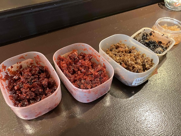 △多彩なフレーバーのシーシャの葉。タバコの葉をフルーツやスパイスとともにシロップに漬けて作られます