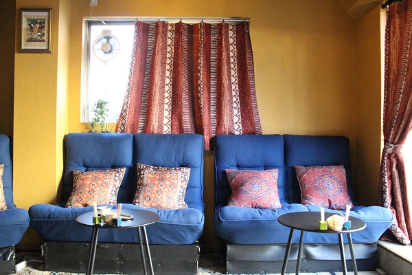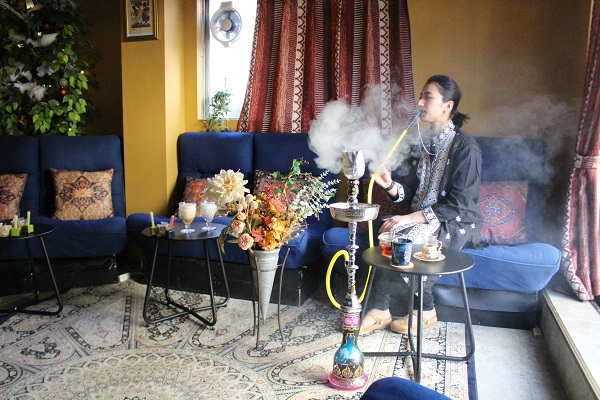 女性一人でも入りやすい雰囲気と、シーシャとワンドリンクで3,000円(2時間)という手ごろな価格で女性客も多いこちら。モロッコやエジプト、トルコなどのファブリックやランプをセンス良く配したエキゾチックムード漂うおしゃれな空間も女性客に支持される理由です。