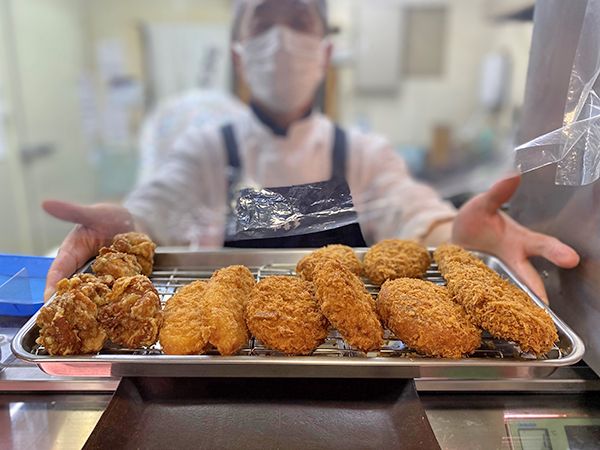 Mr. Wakita also offers a range of deep-fried items such as karaage chicken, croquettes, minced meat cutlets (menchi katsu), pork loin cutlets, pork fillet cutlets, and fried shrimp.