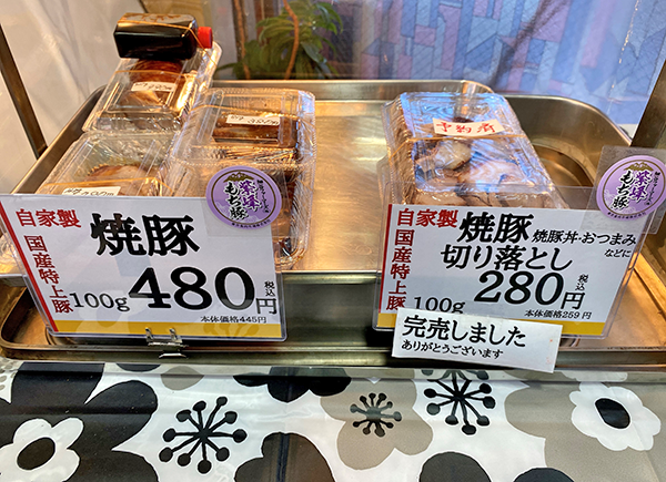 And there’s more. Mr. Wakita also roasts pork loin rolls (480 yen for 100g) and pork end cuts (280 yen for 100g). Both are popular and quickly sell out, so get there early.