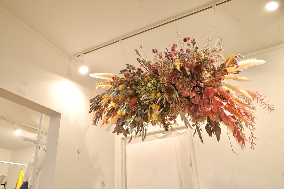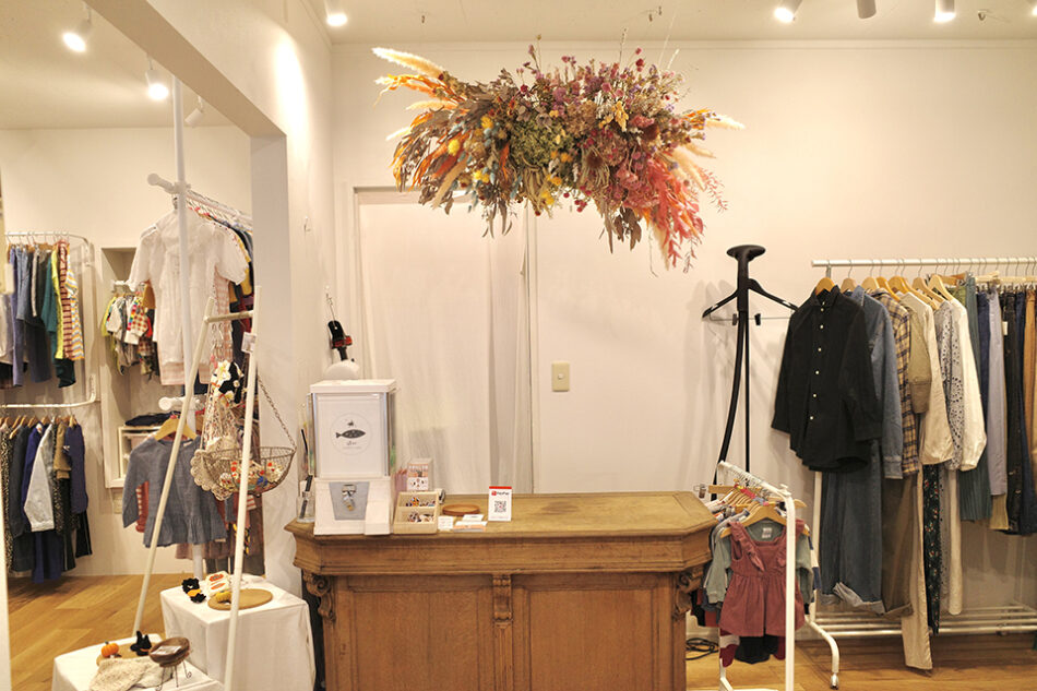 北欧テイストの木目を基調とした明るく柔らかい雰囲気と、カウンター上の大きなドライフラワーが特徴で、堅苦しさを全く感じさせない、思わず買い物心をくすぐる可愛らしい店内だ。