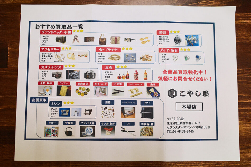 木場駅徒歩2分、バス停木場二丁目の目の前にある買取専門店こやし屋 木場店。