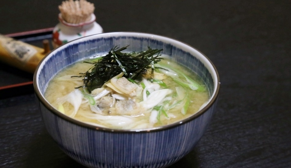 しっかり出汁をひき、旨みたっぷりゆで汁とともにアサリを加え、ご飯とのバランスを考え、お味噌ですこーし濃いめに味付けという手間暇がかかっております。