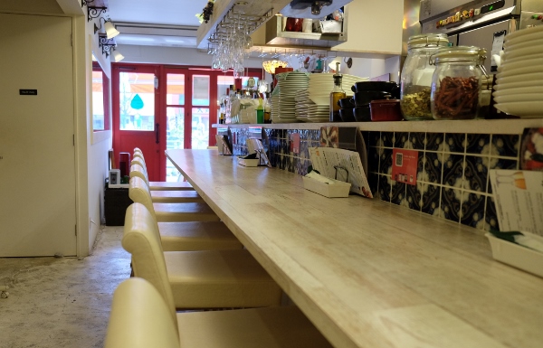ひとりグルメ&飲みを楽しむのにちょうどいい、カウンターは店の奥に。