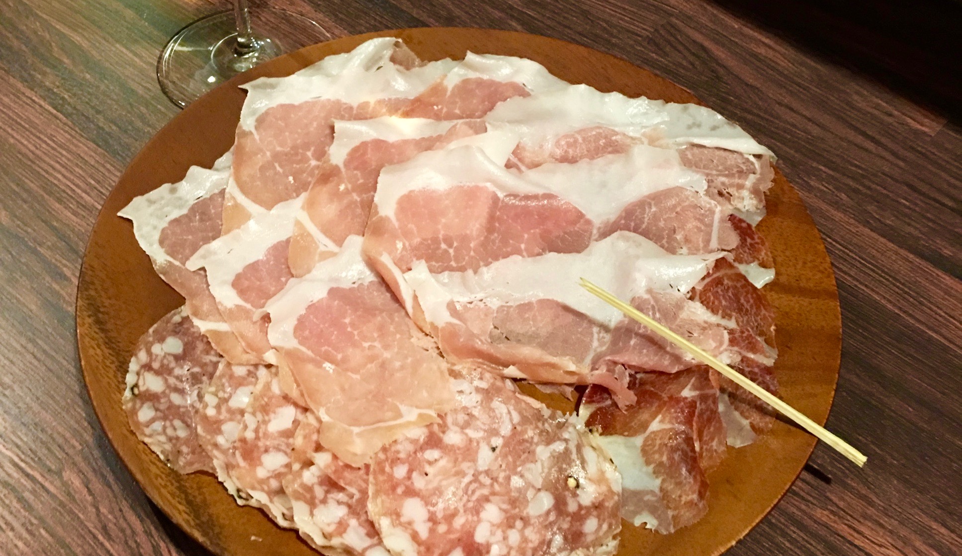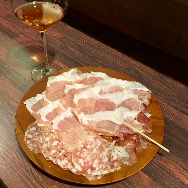 Ombraで楽しむのは、例えば、24ヶ月熟成させた生ハムや、