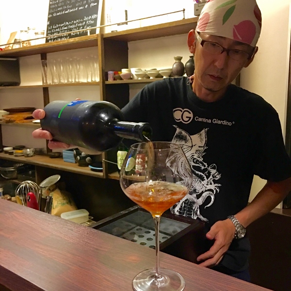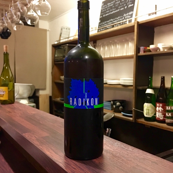 この日、安西さんが薦めてくれたのは酸化防止剤無添加、そして樽とビンで長期熟成させたナチュールワイン「ラディコン」