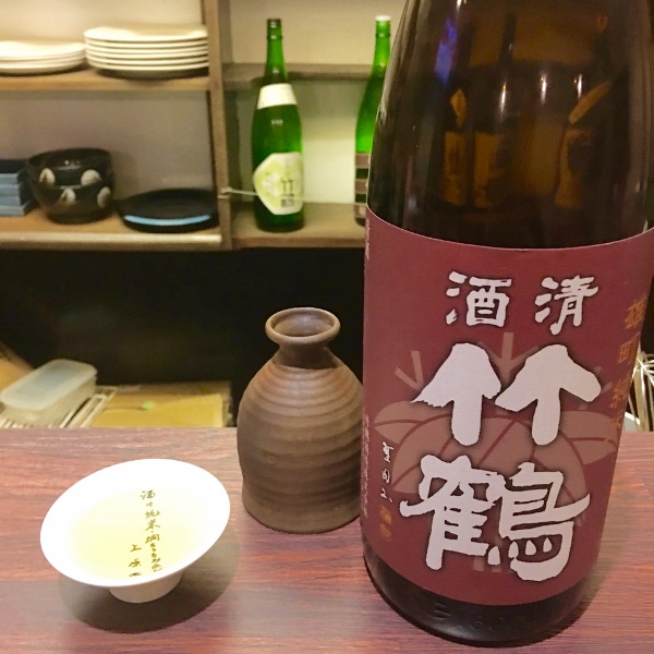 竹鶴酒造の雄町純米26BY(650円)。淡麗がもてはやされるなか米の旨味とまろみが感じられる日本酒だ