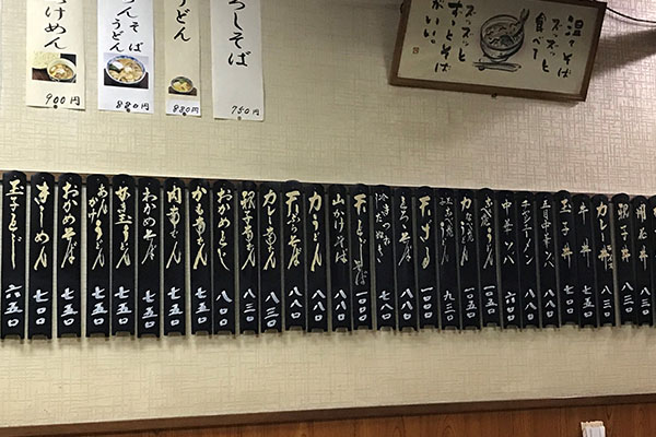 長く営むお蕎麦屋さんには一ひねりある独自の蕎麦・うどんメニューがあり定番メニューとは別に貼り出されていることが多いもの。