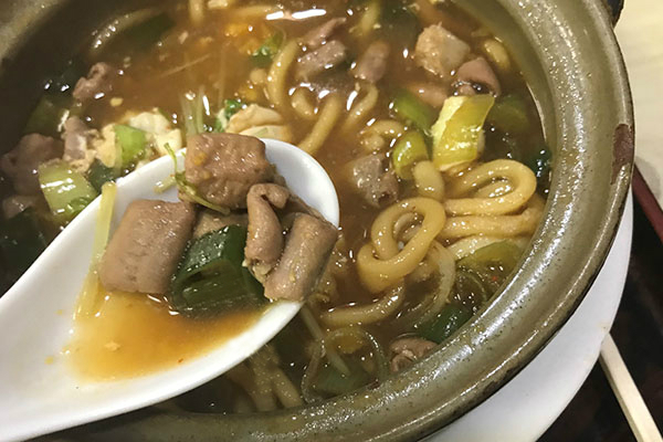 「つまみ」として食す居酒屋のもつ煮込みとは一味も二味も違う、上品でまろやかな味付けに箸がどんどん進みます。ハフハフ、スルスル、ハフハフ。