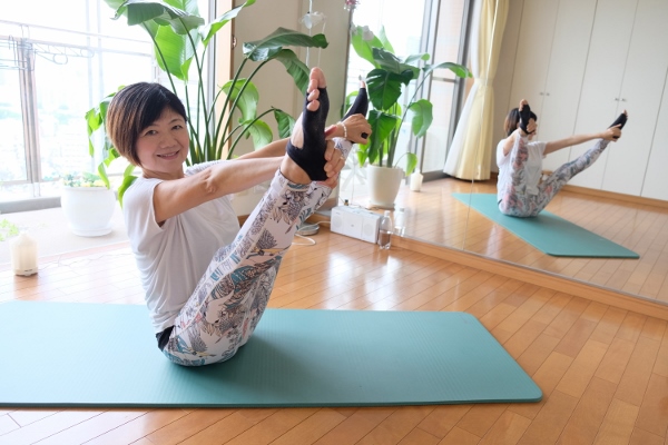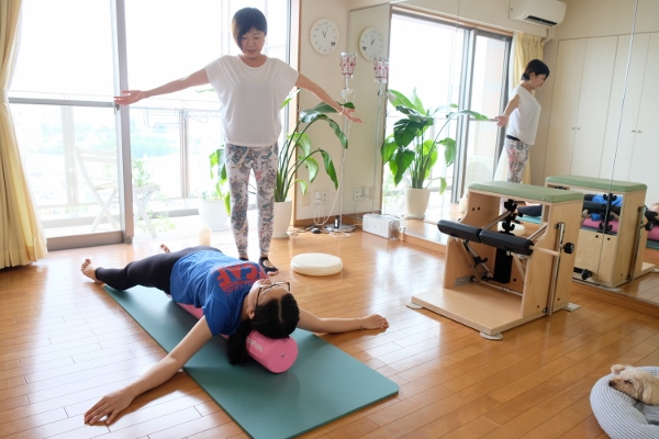 「ピラティスって、人の名前なんですよ。戦争でケガをした兵士がベッドの上など狭い場所でリハビリができるようにと、約100年前にドイツのピラティスさんが考えたメソッドなんです」とNokkoさん。