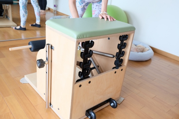 次に、ピラティスさん考案という器具、チェアマシンを使います。