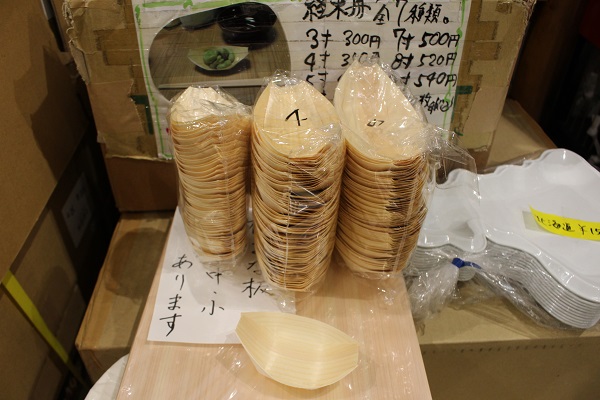現在は、経木はもちろん、多彩な食品容器や箸などの雑貨類、そして世界の工芸品など、時代のニーズに合わせて扱う商品は次第に増え、商品数は3000種以上、というからスゴイ。