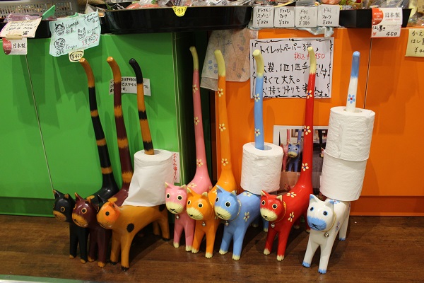 こちらはインドネシア産の木彫りのトイレットペーパー猫。