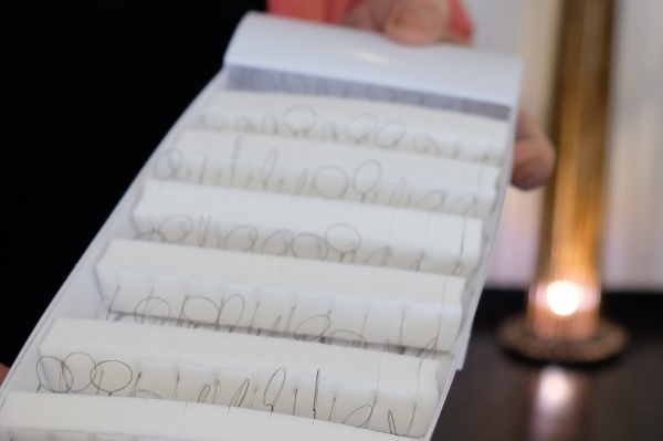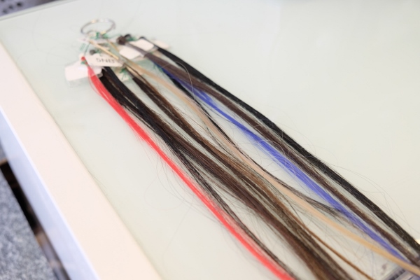 3D増毛で使うのは、太い毛と細い毛がミックスされたやわらかな人口毛。美容室デジャブでは、主に4本取りのものを使います。