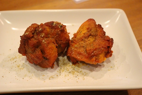 Unlike its cousin tandoori chicken, which is cooked on the bone and strongly flavoured with chili and lemon, chicken tikka is milder but still tangy and goes perfectly with beer. Four pieces for 600 yen is exceptional value.