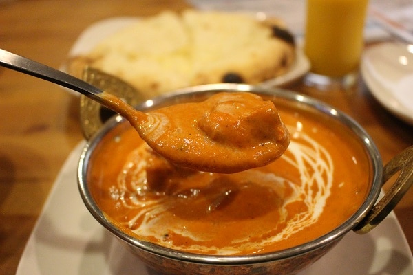 The chefs prepare the basic sauce every morning, first grinding the spices, then frying them with onions, tomatoes and a little water. “Ginger accounts for about 5% of the spice used for the sauce while garlic is around 3%,” explains Pardip. Depending on the dish to be prepared, other spices or ingredients such as nuts can then be added as the meat or seafood is cooked. The butter chicken pictured here is the most popular item on the menu; a wonderfully smooth, creamy concoction that had us purring with pleasure.