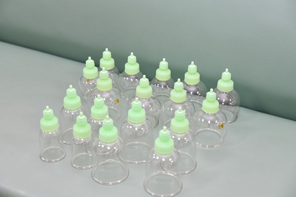△背中にカップを当て真空状態にする吸圧治療。筋肉内に溜まった乳酸や二酸化炭素を早期に除去し、血液の浄化、血行促進に効果を発揮します