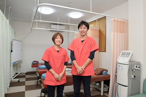 △院長の神戸将也さん(右)と、同じく国家資格を持つ奥様。将也さんが施術を、奥様は受付やアシスタント業務を行っています