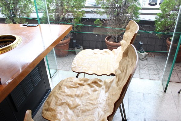 △スペインから取り寄せた個性的なデザインのチェアに注目! 座り心地も抜群です