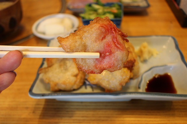 早速いただいたのが、名物「すり身揚げ」。その時期一番おいしい旬の鮮魚を使い、注文を受けてからひとつずつ揚げるというこだわりの逸品、金目鯛やタラなど、高級魚を惜しげもなく使っているので、旨みも弾力も格別です。