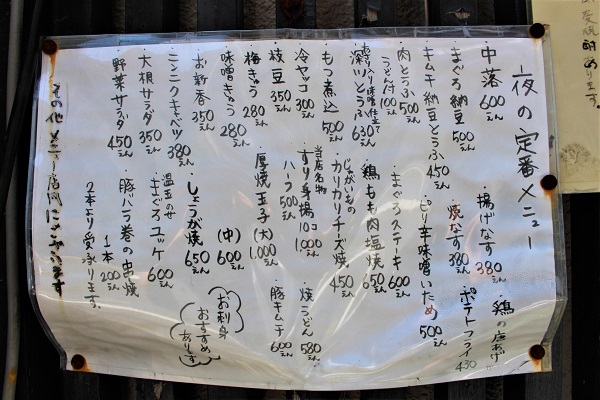 △仕入れによって内容が変わるので、メニューは手書き。店主の直筆、いい味だしてます!