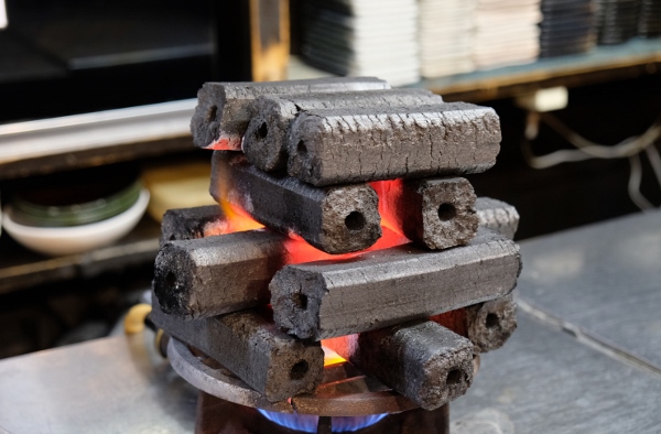 △火起こし中の備長炭。オープン前からじっくり時間をかけて準備中
