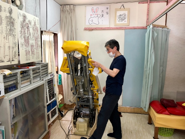 “I studied under a globally-renowned chiropractic instructor named Hirotaka Miyano. He’s an expert in both the Sacro-Occipital Technique developed by the American chiropractor and osteopath Major DeJarnette and Cerebrospinal Fluid Cranial practice, both of which I also use. Basically speaking, I developed my own style over the years, like most other chiropractors. It’s a very difficult skill to master and, like calligraphy for example, it takes years to learn,” Mr. Kobayashi explains, looking totally different in his loose black chiropractic uniform.