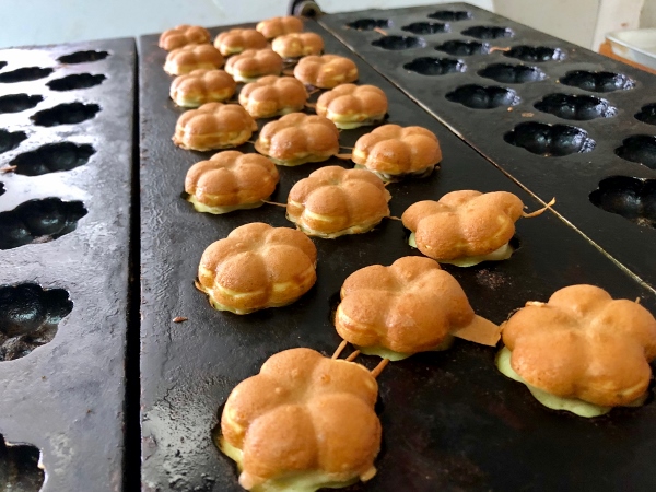 We ate them piping hot, straight from the molds and they were excellent; slightly moist, not too sweet and with a nice springy texture (mochi mochi). It’s easy to understand why they have been so popular for over 50 years.