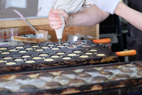 “These days it’s more of a hobby than a business,” explains Mr. Kobayashi. “I usually make up a few batches at lunch time for local kids and families to pick up for an afternoon snack on their way home from school. If it’s raining, I won’t make them. We lost my father a couple of years ago, so I wanted to maintain the family tradition and continue to use his molds.” He makes two kinds, a plain version and one with sweet red bean paste (anko).