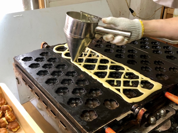 “My father made ningyo-yaki for around 50 years. He started in Morishita then we moved here about 45 years ago. Higashisuna soul food, people call them,” explained Mr. Kobayashi. “His ningyo-yaki became popular and he received many orders from supermarkets and other stores to supply ningyo-yaki for their own brand labels. Many people have eaten our products without knowing where they actually came from. At peak production, there were several people working here, making huge numbers every day.”