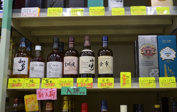取材時には、国産人気ウイスキー山崎や富士、余市、宮城狭などが新入荷。お好きな方はお早めにどうぞ!