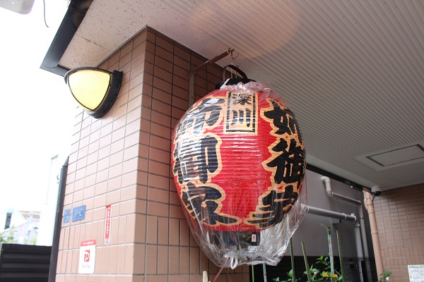 △友人や常連さんが新生開店のお祝いに作ってくれたという提灯と看板が目印です