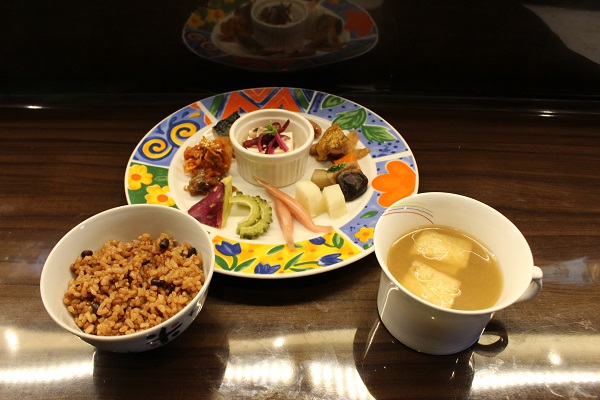 △夜の単品と同価格(1,200円)で雑穀玄米ご飯と具沢山味噌汁が付くのでかなりお得です