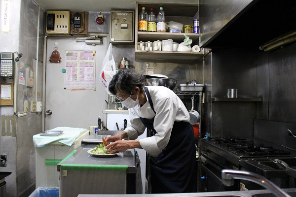 △毎朝8時から仕込みを始める晴久さん。吟味した素材を使って丁寧に作られた洋食は、毎日でも食べたくなる心和む味