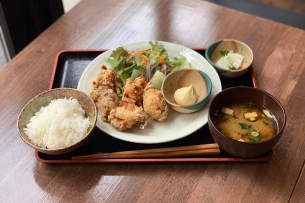 The lunch menu features a variety of popular sets: a “Tsukiji” set featuring seasonal fish, pork and ginger (shogayaki), deep-fried chicken (karaage), hamburg steak, and chicken and vegetable curry were among the items available on the day we visited.