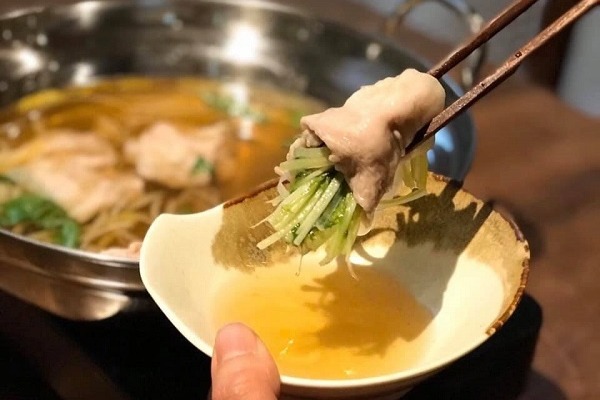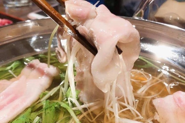 A selection featuring all three plus negi onions and Japanese mustard greens is a very reasonable 2,500 yen. Simply dip the pork in the bubbling broth, wrap up some vegetables and eat with a dipping sauce such as sesame or the tangy, citrus-based ponzu.