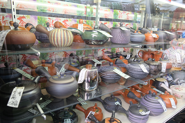 店主は、1951年に創業のこの店をご両親から引き継いだ森弘子さん。日本茶に加え、森さんがセレクトした急須や湯飲み茶わんを常時約100種類、たばこも販売しています。