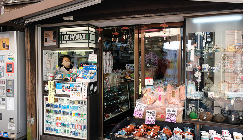 昭和の面影残る、砂町銀座商店街の「君野園」。お茶の効能や器のこと、たばこのこと、気さくにいろいろ教えてくれますよ。