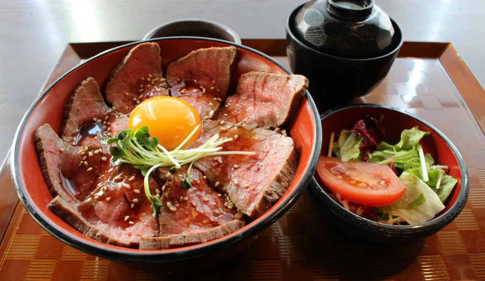 なかでもイチオシの新メニューが2月に登場した「ローストビーフ丼定食」950円。
