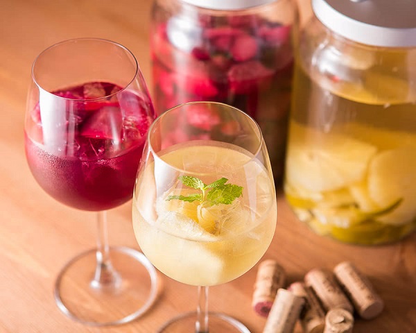 △「自家製サングリア」赤・白各748円(税込)。サングリアハイボールも人気