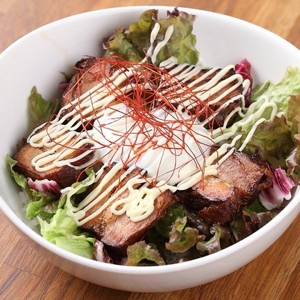 △定番人気のランチ「自家製チャーシューのロコモコ丼~温泉卵付き~」680円(税込)