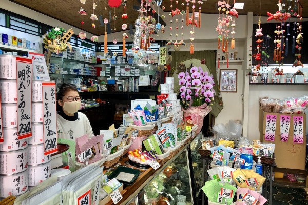 Coming from the Meiji street end of Sunamachi Ginza, Kiminoen is about halfway along on the right, just opposite the glasses shop. Established in the early 1950s, the shop is redolent of the post-war years in both its design and comfortable atmosphere.