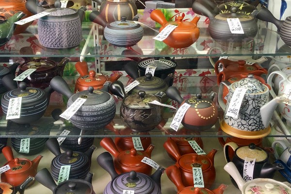 Tea is useless without a teapot and Kiminoen has a fine selection. “These days I tend to order pots that I like myself rather than those which I think would sell well, “adds Ms. Hori. Prices vary wildly, from a couple of thousand yen to eye-opening numbers for the work of a famous potter.