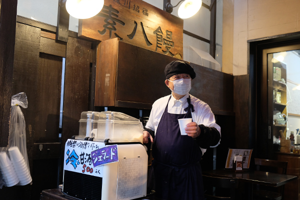 そんな思いで店頭販売するのが、山口県「旭酒造」の「獺祭」の酒粕で作る「甘酒」500円。夏は冷やしてジェラードで、冬はホットで提供します。