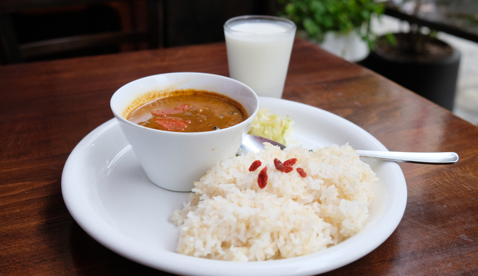 定番の「薬膳カレー」は自家製ケフィアヨーグルトドリンクが付いて1,000円。