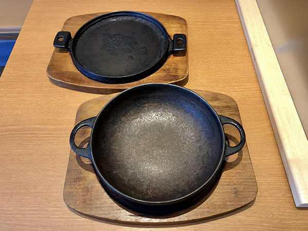 Fukagawatei uses cast iron skillets and hot pots made at a foundry in the Oshu area of Iwate Prefecture in Japan’s far north. While the manufacture of cast iron in Oshu began during the 11th. century, Nambu ironware (nambu tekki in Japanese) has a history of over four hundred years, taking its name from the Nambu clan who dominated the area for 700 years. The particular foundry whose skillets are used at Fukagawatei was established in 1852. Mr. Fujii spent ten years learning his trade in the Italian restaurant of a well-known hotel and at a celebrated teppanyaki restaurant, where he was charmed by the joys of cast iron cookery.
