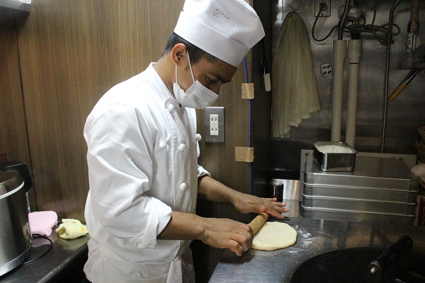 △もちもちの生地で3種のチーズをくるんでタンドール窯へ。注文をうけてから成型して焼き上げるから、焼き立て熱々が楽しめます