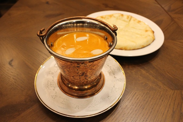 △オーナー・スリヤさんイチオシの「サンライズオリジナルバターチキンカレー」1,390円。濃密でコク深い味わいは感動モノ!
