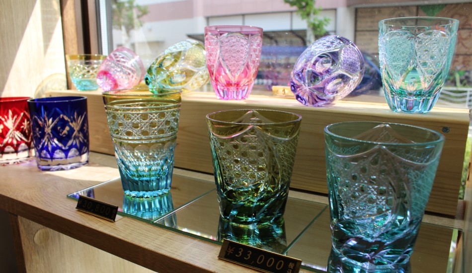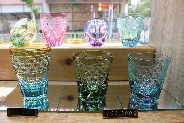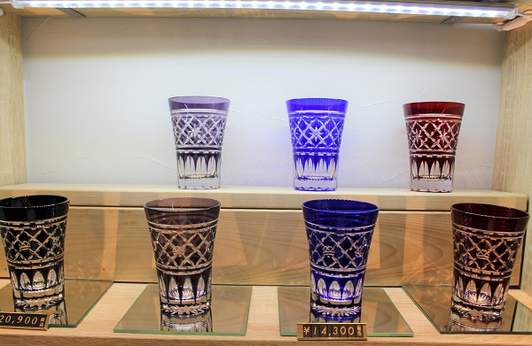 優美な佇まいの江戸切子がズラリ